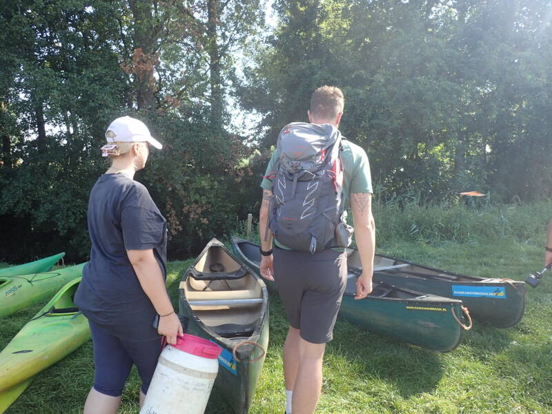 We kijken 's morgens uit ons raam en zien de tent van Niek en Maud niet meer staan, gelukkig kwamen ze langzaam in zicht en konden we de dag starten met een heerlijk ontbijt. Ook werden de lunchpakketjes gemaakt voor onderweg. Er staat een kanotocht op de planning, deze vertrekt in Neerpelt, Belgie en eindigt in Valkenswaard.