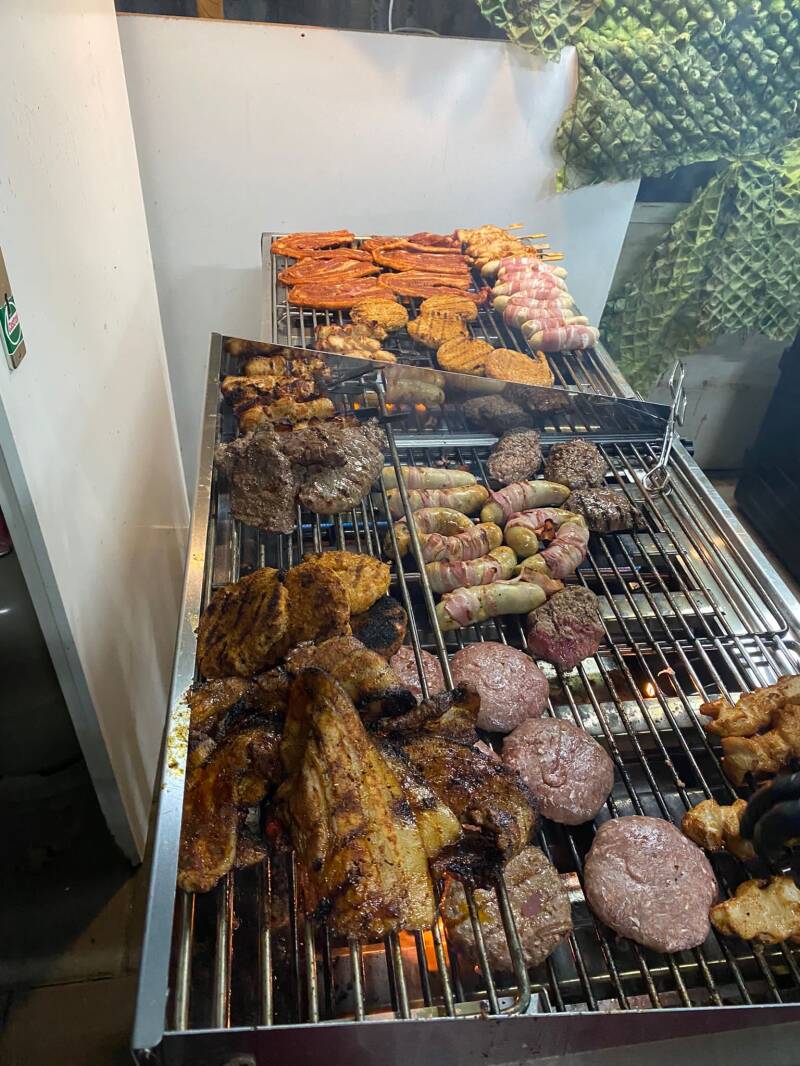 's Avonds is er een Winter BBQ, ook weer een hele ervaring. Het begint om 18:00, we laten de honden nog even uit en laten ze in de camper als we gaan eten. Achter in een zogenaamde Romney staan tafels en stoelen voor alle aanwezige, maar ook de BBQ staat binnen te loeien. Zodra je binnen bent bevindt je je in de mist van rook. Maar het ruikt wel lekker dus dat scheelt.