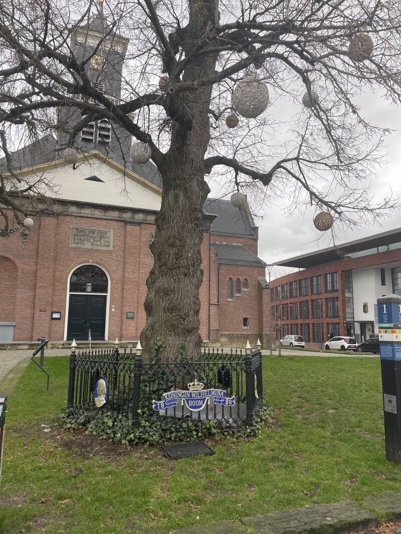 We lopen lekker door de stad en genieten van alles wat er te zien is en te doen is, in het midden van het centrum is een ijsbaan gebouwd en het is er erg druk met schaatsende kinderen. We gaan bij de HEMA een lekker worstje kopen, bellen nog even met opa en fietsen dan weer op het gemak terug. Als we bijna bij de fietsen zijn en langs de kerk lopen zien we een boom die geplaatst is voor Koningin Wilhelmina, maar ook voor Prinses Amalia en Koning Willem Alexander staat er een boom