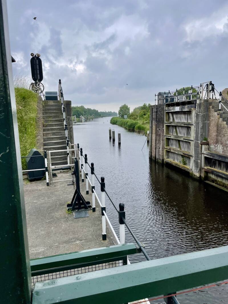 Zaterdag ochtend, na het ontbijt wordt er eerst een ritje gemaakt naar Dinteloord voor een ander luchtbed. Het luchtbed waar opa op sliep liep langzaam leeg en dat is niet echt een pretje. Toen ze terug kwamen hebben we de fietsen gepakt en een route van ongeveer 19 km gefietst, de routes maak ik altijd in route.nl. We gingen eerst naar Benedensas waar een bruidspaar foto's aan het maken was. Benedensas is een gerestaureerd sluizencomplex, daterend uit 1824. We maken wat foto's en er valt wat miezer naar beneden, we lopen over de sluizen en aan de overkant kunnen we weer op de fiets stappen en verder fietsen.
