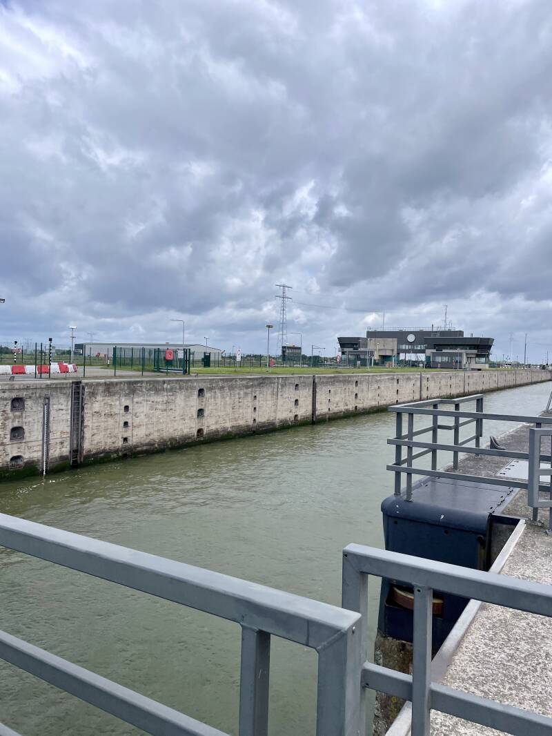 Op de markt van Kruiningen doen we een bakje koffie bij de Zeeuwse bakclub en gaan daarna weer verder. We willen even gaan kijken bij de sluizen en naar Hansweert.