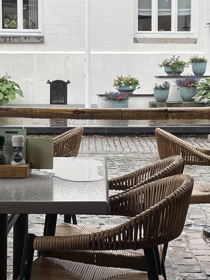 De eerste stop is het plaatsje Eijsden, hier zien we alleen maar dat de terrassen worden aangevuld met mobile biertap punten en het hele dorp is hier aan de gang. Wat hier gaat gebeuren is ons 'nog' onbekend. Onze route geeft aan dat we het voetveer over de maas moeten pakken edoch, in verband met de sterke stroming en hoge waterstand is dit voetveer uit de vaart. Buienrader geeft aan dat het zo gebeurd is met de miezer regen en we maken ons op voor de serieuze regen. We besluiten het eerst volgende terras te pakken voor een koffietje om hier even de bui uit te zingen.
