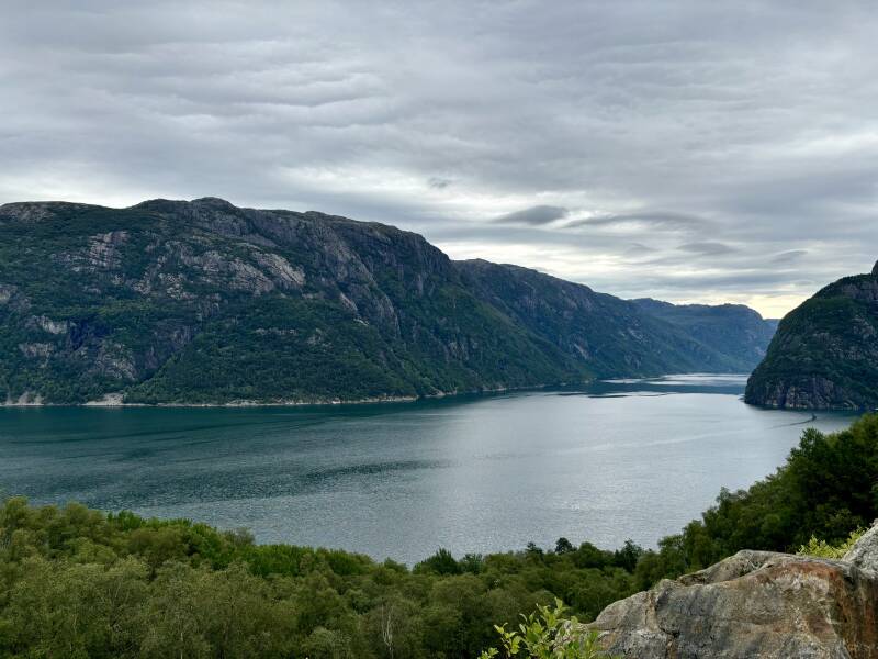 Vanmorgen vertrokken we weer uit Stavanger, een super mooie stad met veel historie en wij hebben daarvan mogen genieten. Maar nu gaan we weer verder, in eerste instantie zouden we de E39 terug rijden naar Kristiansand en onderweg nog wat stops maken maar dan ga je dezelfde weg heen als terug. Dus besloten we om een andere weg te nemen nu de camper niet meer zoveel uitlaatgassen naar binnen gooit. We rijden over de 450 richting Rysstad en zien wel waar het schip strand. We willen zo'n 75 kilometer maken en dan kijken waar iets leuks is om te overnachten.