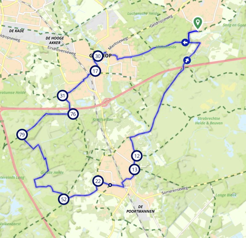 Onderweg komen we langs het kasteel van Geldrop, maar daar is het te druk voor een foto dus die halen we ook van internet af, deze keer niet via de website van het kasteel maar van google. We maken nog even een rondje door het dorp en fietsen dan weer verder, Via de Grote Heide komen we uit in Heeze maar voor het zover is gebeurt er nog van alles.......