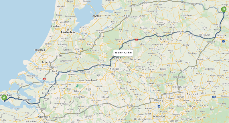 zaterdagochtend vertrekken we rond kwart over negen en volgens alle berichten is het zwarte zaterdag in Duitsland en zal het wel behoorlijk druk zijn op de weg. Maar voor dag 1 hebben een camping gereserveerd niet heel ver over de grens zo'n 450 kilometer rijden. Deze vakantie gaan de honden ook mee dus we moeten wat vaker stoppen onderweg, wat eigenlijk niet heel erg is.