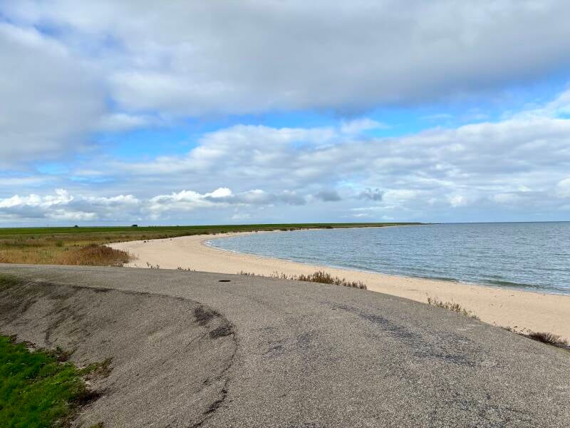 We rijden van Urk naar Edam via de N307, de weg tussen het IJsselmeer en het Markermeer, nooit geweten dat hier een weg was, halverwege was er een parkeerplaats en daar zijn we even gestopt, wat foto's gemaakt, wat drone opnames gemaakt en een geocache gevonden dus een prima stop. Honden ook blij dat ze even eruit konden. Het waaide trouwens behoorlijk op het dijkje.
