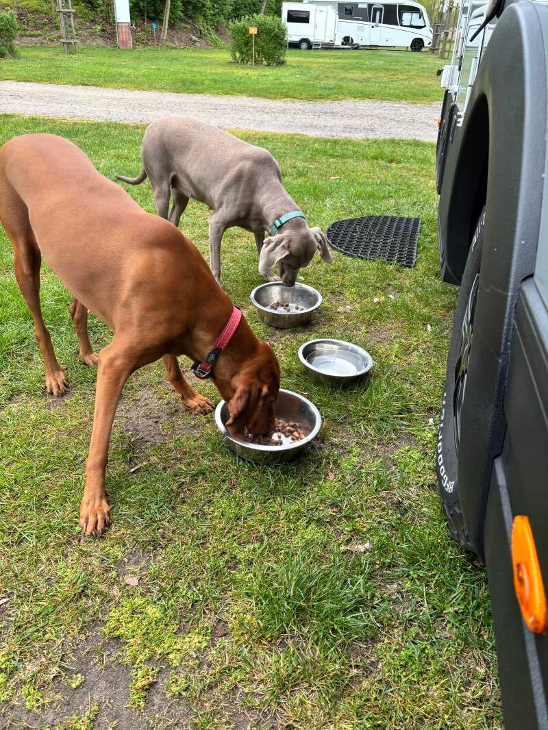 Marco maakt nog wat drone shots en vanaf de camper kijken we zo op de Oostzee, best wel bijzonder. Na het eten doen we nog een flinke ronde met de honden en dan gaan we douchen en houden we ons gemak. Het begint zachtjes te tikken op het dak en zo is de dag weer voorbij.