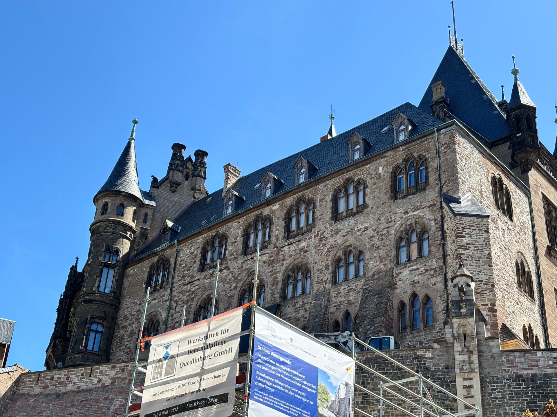 Het eerste stuk is even zoeken hoe we weer op de Deutsche Alleenstraße komen maar na dat we de Elbe zijn overgestoken komen we al snel op de 187 naar Roßlau, we rijden langs grote velden met (wat wij denken) aardappels en komen net voor Nienburg op een 'umleitung' die ons de hele andere kant uitbrengt. Na 6 dorpen houden we het voor gezien en zetten de TomTom naar Werningerode, want dat schijnt een juweeltje te zijn.